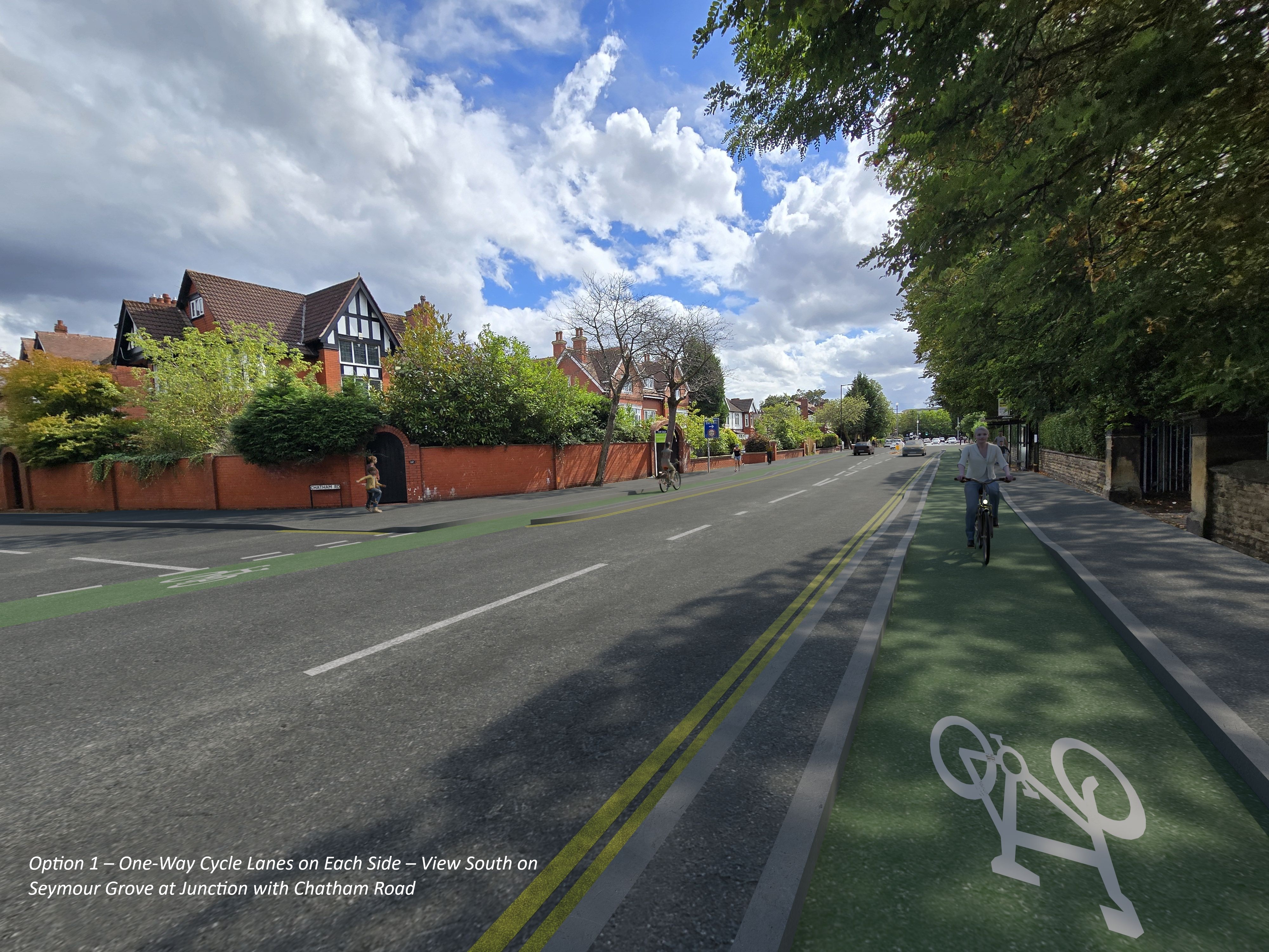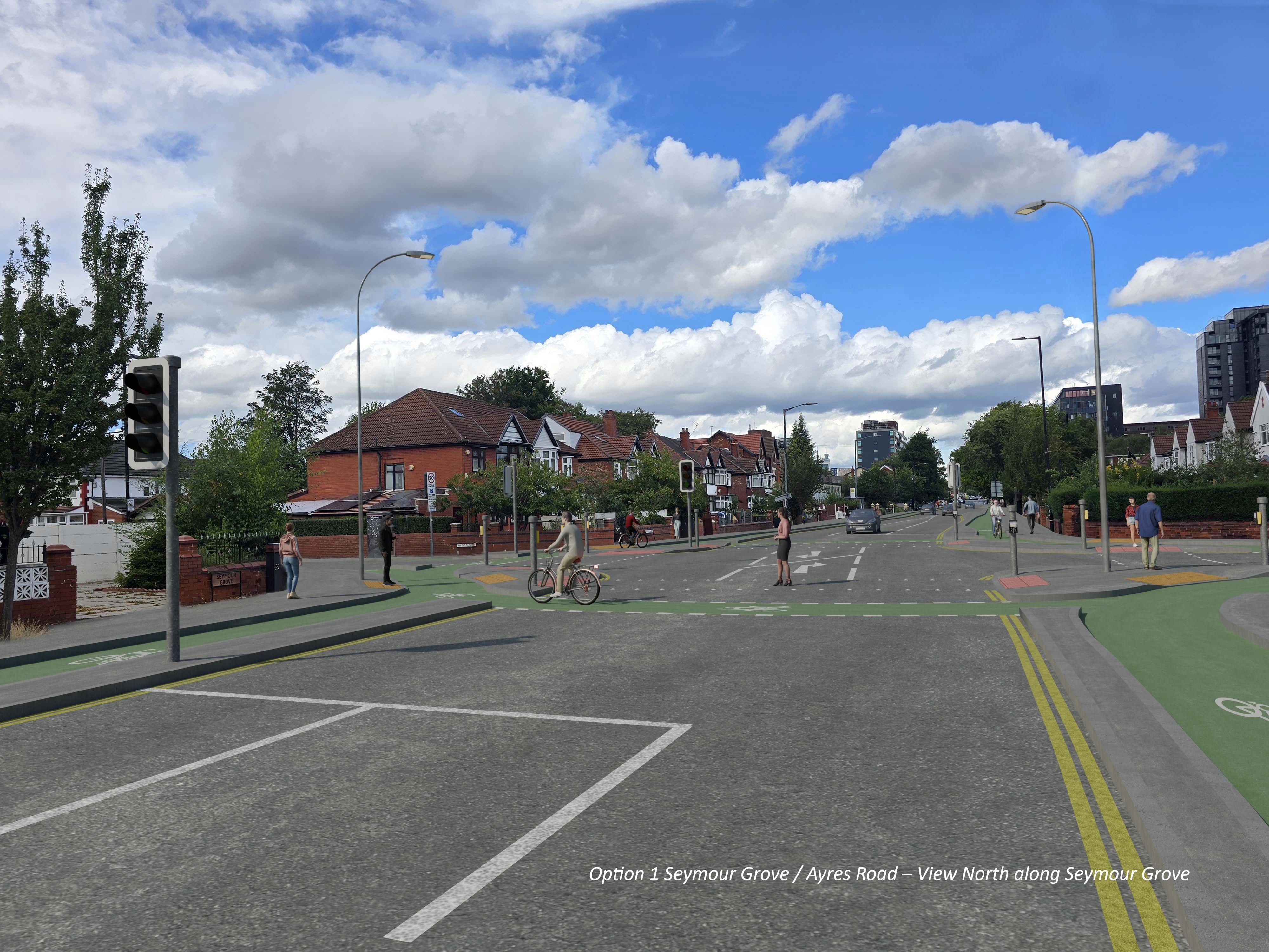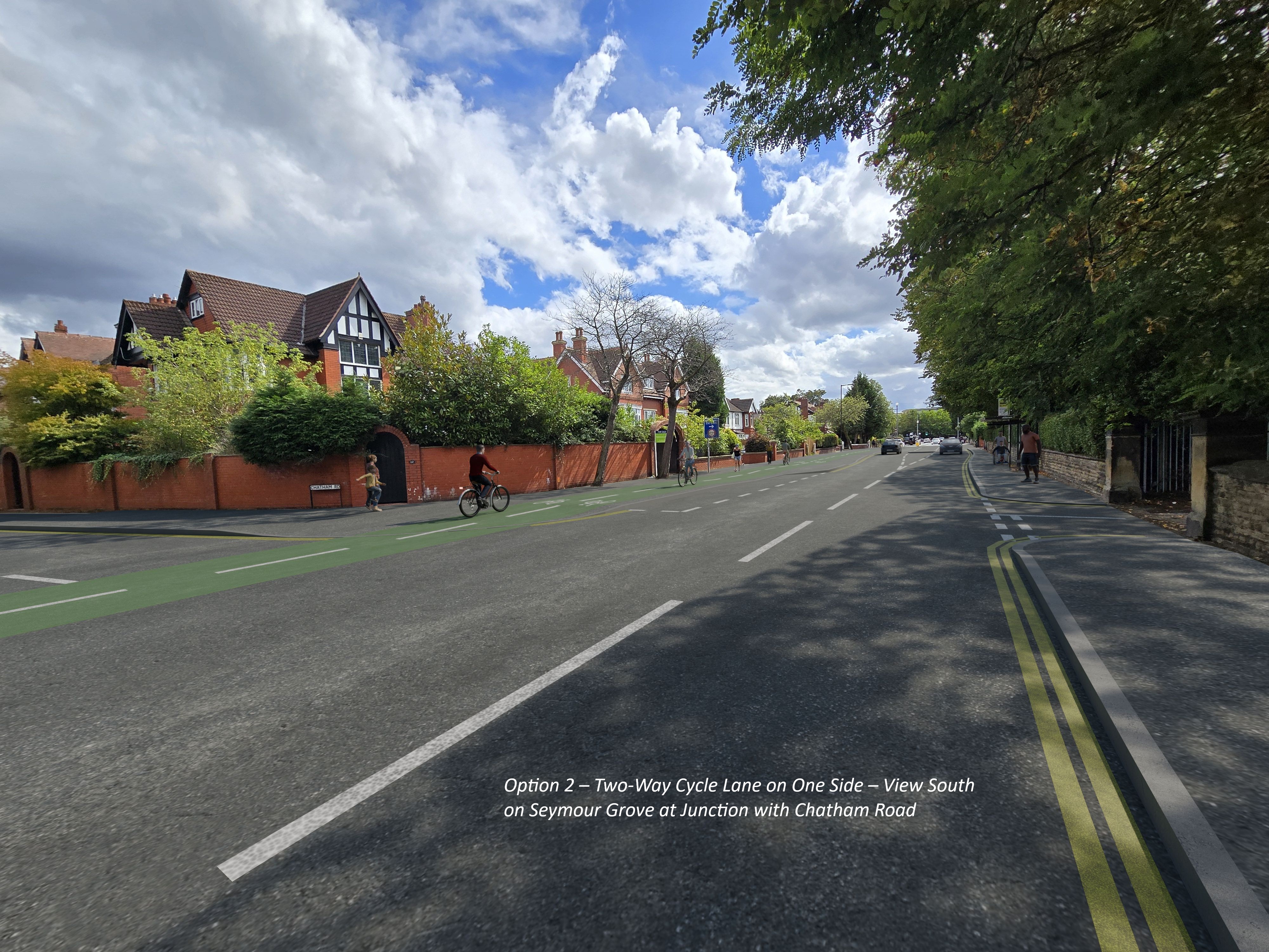 Options 1 and 2 - View South, Seymour Grove at Chatham Road